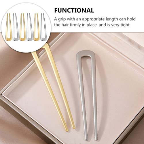 Beaupretty Mollette Forcina D'epoca Pin per a Forma di U Donne: 6Pcs French Hair Forks Updo Chignon Pin Gold Argento 2 Pesanti Bastoncini da Barrette per da per Sottili Bacchette Portacapelli