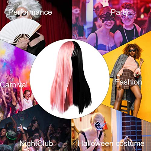 Beaupretty Parrucche Sfumate Parrucca Mezza Rosa E Nera Parrucche Sintetiche per Lunghi Dritti Moda per Donne Ragazze Trucco di Halloween Costume Cosplay Accessorio per Feste