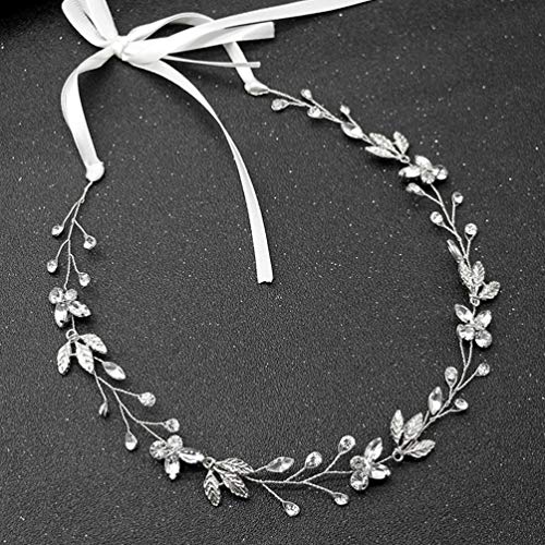 Beaupretty Wedding Hair Vine Strass Crystal Pearl Leaf Bridal Tiara Crown Headband Headpiece with Ribbon Belt Accessori per Capelli da Sposa per Le Donne