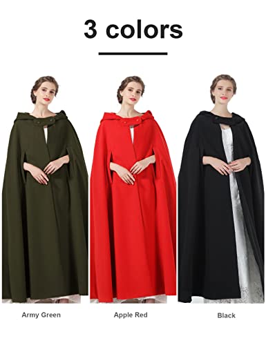 BEAUTELICATE Donna Mantello con Cappuccio Inverno Misto Lana Cappotto Medievale Robe Lungo Poncho Giacca con Giromanica per Cosplay Halloween Costume Natale Matrimonio (Rosso-lunghezza Intera 127cm)