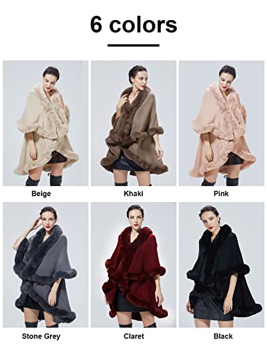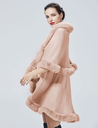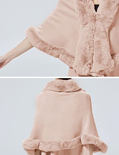 BEAUTELICATE Mantello Poncho Scialle Donna Pelliccia Sintetica Stola Maglia Cardigan Invernale Matrimonio (Rosa, Taglia Unica)