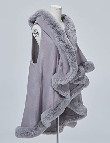 【Poncho come cappotto】: Il mantello in pelliccia sintetica è lavorato a maglia. Il cucire è denso, non facili da deformare. Ha il foro per il braccio e il design a strati ti fa sembrare sottile. Può essere facilmente vestito su o giù.