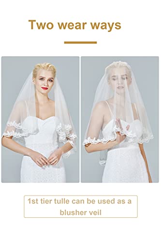 BEAUTELICATE Pizzo Veli da Sposa Accessori da Sposa Fasce da Donna Decorazioni per Capelli di Matrimonio per Veli Tulle a 1 Strati Bordi Ricamati Bianco o Avorio (Bianco - 2 Strati)