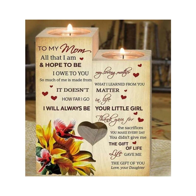 To My Beautiful Daughter -To My Mom Wooden Candlestick-Straighten Your Crown-Elephant Heart Candle Holder For Daughter,B