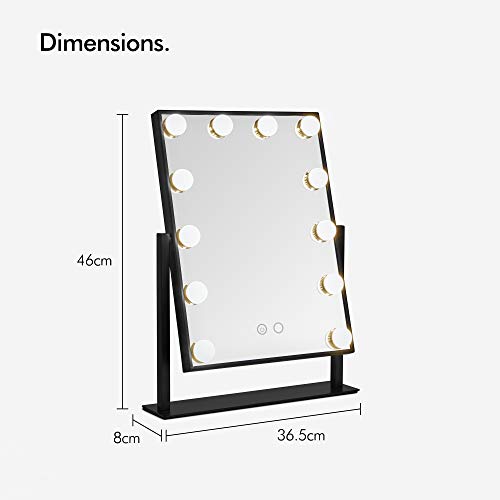 Beautify Specchio con 12 Lampadine a LED - Tavolo/Viaggio/Toeletta/Bagno - A sé stante e Girevole - Funzionamento Touch - Luce dimmerabile