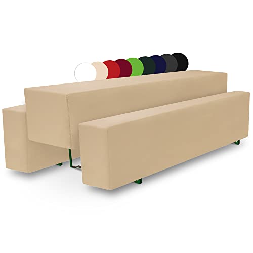 Beautissu Set di Fodere Comfort M per panche da birreria + 1 tovaglia 50x220cm e 2 Imbottiture in gommapiuma - ecrú