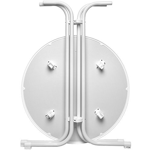 Diametro della superficie orizzontale Ø 80cm - ripiano a scomparsa plastificato grigio con bordura in materiale sintetico - altezza 110cm - struttura in acciaio zincato in polvere colore bianco