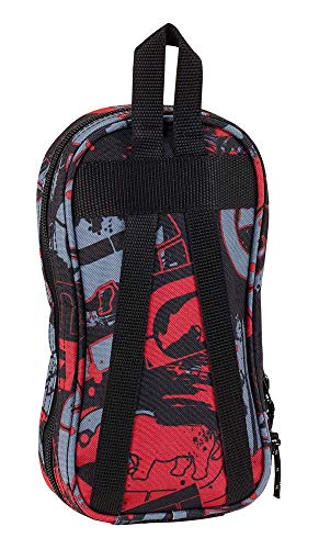 Safta Ecko Unltd. Borsa da toilette ufficiale con 4 astucci inclusi pieni di articoli scolastici. Include 1 pennarello, 12 pennarelli, 12 matite colorate, 1 righello, 1 matita, 3 penne, 1 temperino, 1 forbice e 1 gomma.