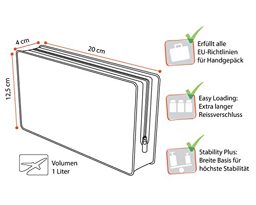 Beauty case trasparente | 1 litro | Borsa cosmetici | Borsa per cosmetici trasparente, ideale per i controlli dei liquidi nel bagaglio a mano in aeroporto