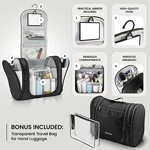Beauty Case Viaggio da Appendere con Borsa da Viaggio Trasparente e Specchio per Uomo, Donna - Borsetta da Bagno Premium Idrorepellente | Borsa Toilette per Valigia, Bagagli a Mano Outdoor