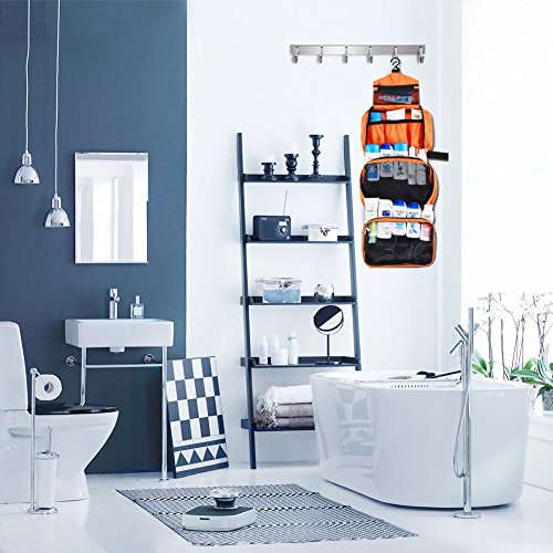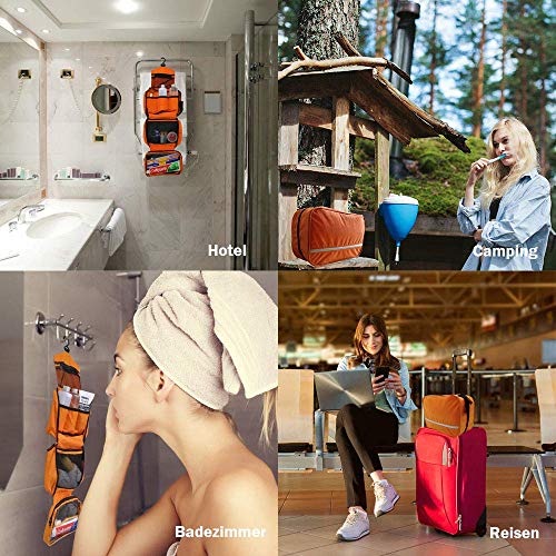 Beauty Case da Viaggio, Borsa per Toilette - Uomini e Donne, Con Gancio e Maniglia, Materiale Impermeabile, 2 Spazzolini da viaggio Regalo (arancia)