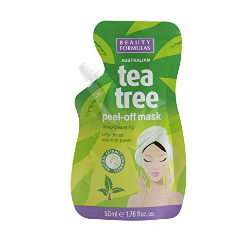 Beauty Formulas Australian Tea Tree - Maschera peel-off, per la pulizia profonda e rimuove i pori, rimuove i punti neri, rimuove le cellule morte, 50 ml