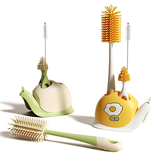 Bebamour Spazzole per biberon in silicone per biberon Spazzola per ciuccio con supporto per riporre Spazzole per pulizia antigraffio per cannucce (Yellow Snail)