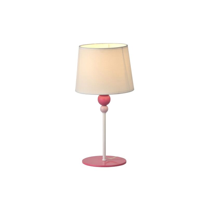 paralumi in tessuto liscio panna + base dal design estremamente delicato con parete rosa e palline decorative in due tonalità di rosa;