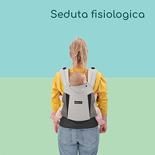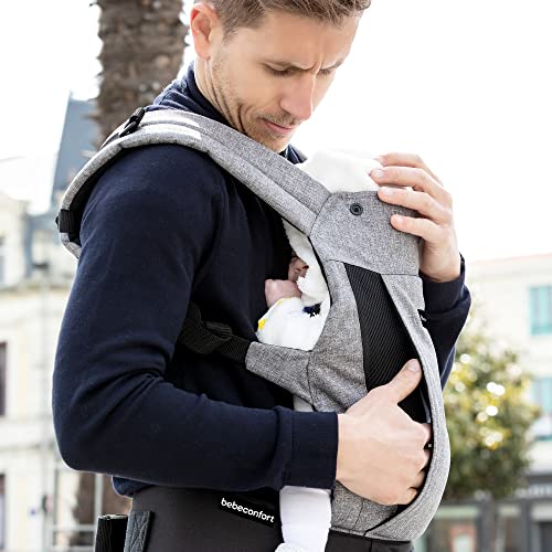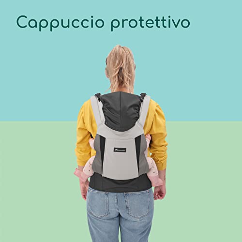 Bebeconfort Physionest Marsupio Ergonomico Neonati 0-36 mesi (15 kg), Porta bebé con poggiatesta e cappuccio, utilizzabile in 3 posizioni: Frontale, Schiena, Laterale, Colore Grey Mist