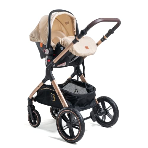 BEBELISSIMO - Passeggino combinato trio 3 in 1 - seggiolino auto 0m - navicella - Sistema modulare combinato - fino a 22kg - Premium - beige