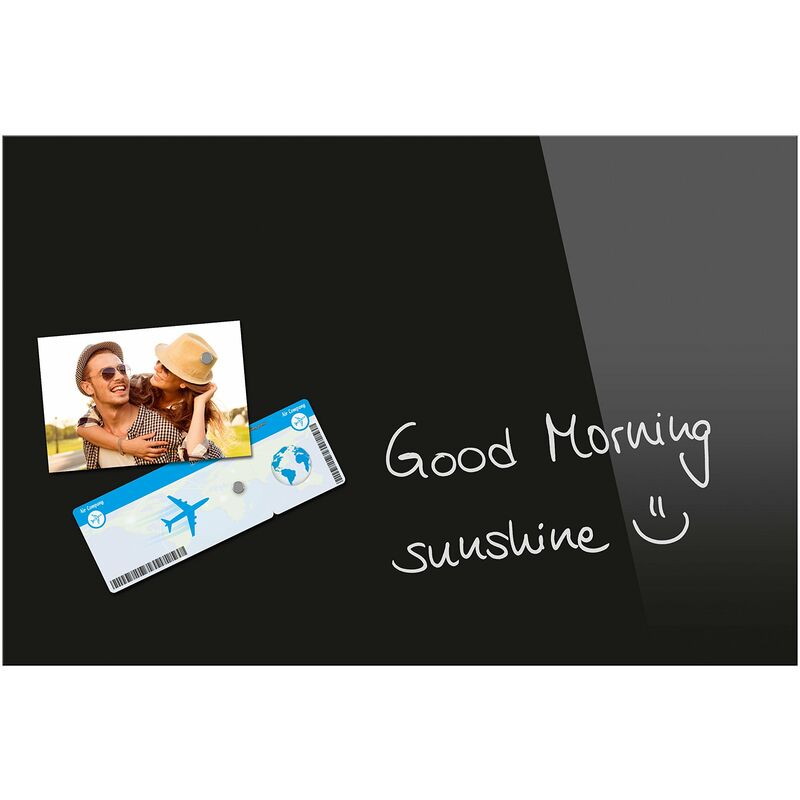 Lavagna magnetica nera vetro di Be!Board per la scrittura con lavagna e pennarelli e allegare note adesive con forti magneti (Attenzione: normali magneti da frigorifero non tenere) 60 x 40 cm - ideale per locali piccoli e nicchie - in casa o in ufficio - Disponibile anche in diverse dimensioni Sospensione senza telaio - pannello in orizzontale o verticale formato sospendibile Incluso: due forti magneti al neodimio (voce B3102) a forma cilindrica, di montaggio materiali (tappi, viti), dima e istruzioni di montaggio (disponibile anche per il download qui). 7 anni di garanzia, vetro di sicurezza temperato (EN 12150-1), resistente ai graffi