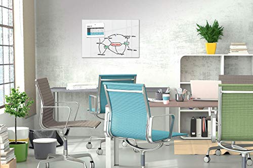 BeBoard SY489 Lavagna magnetica di vetro bianco 90 x 60 cm + 6 Magneti + 1 Marcatore nero