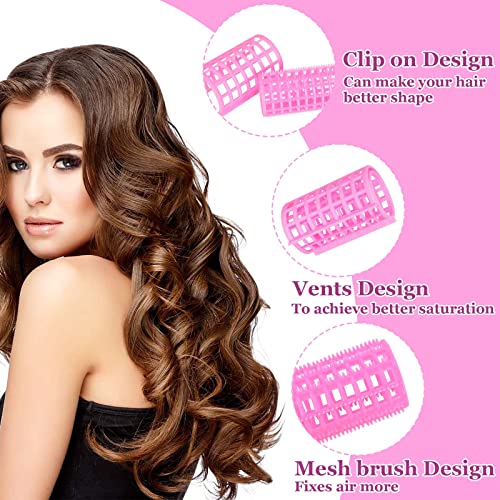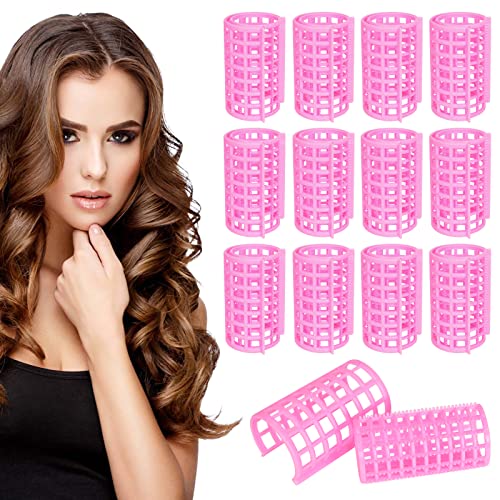 Becanno 12 Pezzi Bigodini Grandi, 36MM Bigodino Pigro Set Senza Calore per Capelli Bigodini Autoadesivi, Hair Rollers Self Grip Salone Parrucchiere per Capelli Donne Corti-Medi-Lunghi (Rosa)
