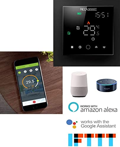 BecaSmart Serise 003 WIFI Termostato Compatibile con Riscaldamento caldaia Controllo della programmazione cellulare Lavora con Alexa, Google Home (Riscaldamento caldaia, Nero (WIFI))