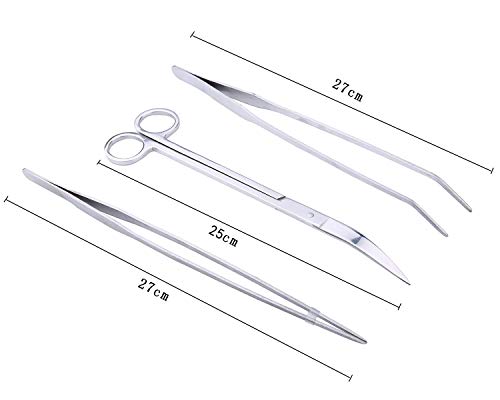 Becho - Pinzette per piante acquatiche, 3 in 1, in acciaio inox, set di attrezzi per acquari, per piante