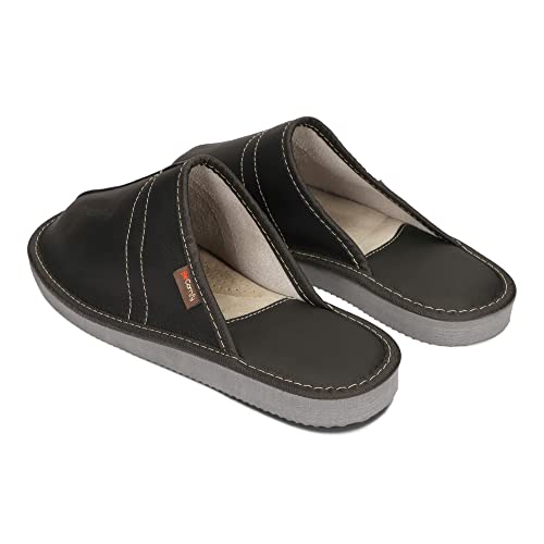BeComfy Pantofole Pelle Scarpe da Casa Uomo Comode Ciabatte Scatola Marrone Nero Modello FM82