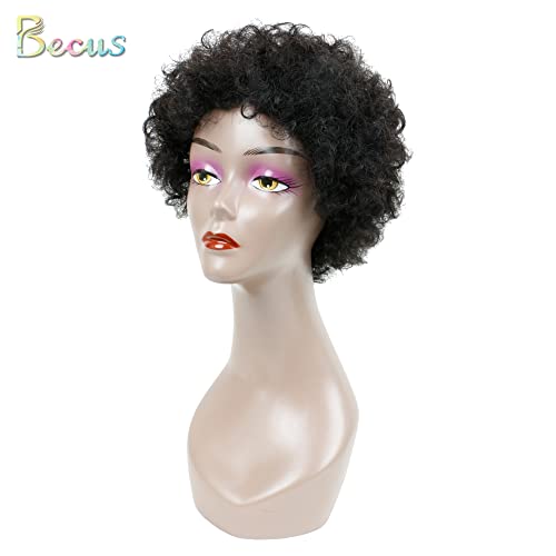 Becus Parrucca afro per donne nere Remy capelli umani corti afro crespi ricci per donne nere 70S 80S discoteca Rocker Costume parrucche con cappuccio parrucca (naturale nero ricci)