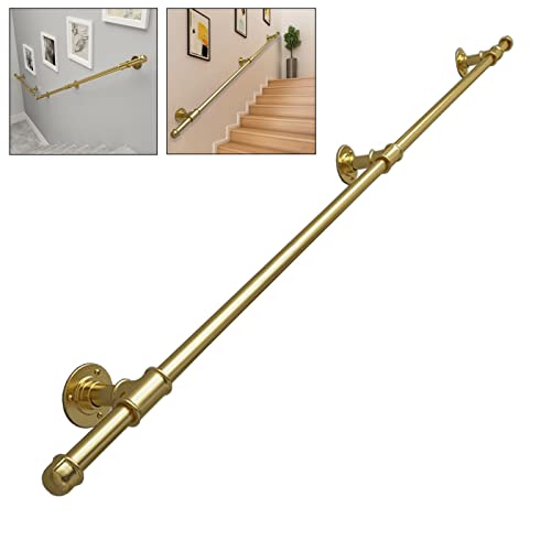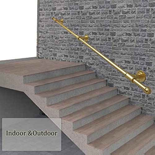 BEdaw Corrimano per Esterni,Hiera per Scale Corrimano Di Sicurezza Montaggio a Parete Staffe Perhiera in Ferro Battuto in Metallo Corrimano per Interni Dorati Kit Completo/8.2Ft/250Cm