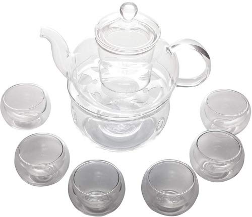 Beddingleer Vaso di Vetro Elegante Resistente al Calore 600ml con 6 Doppie Tazze da tè di Muro
