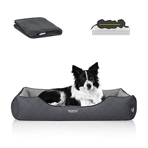 BedDog Premium Lettino Ortopedico per Cani WUFFI, MEMORY FOAM, Cuccia in Pelle Sintetica e Tessuto, Coperta Regalo - ROCK-FLOW (grigio/grigio)