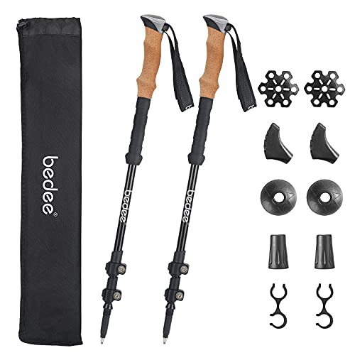 Bedee Bastoncini Trekking, Racchette Trekking Telescopico a 3 Sezioni, Bastoni Trekking Alluminio 7075 Lunghezza 65-135cm, con Sistema di Bloccaggio Rapido e Eva Maniglia, Adatto per Escursionismo