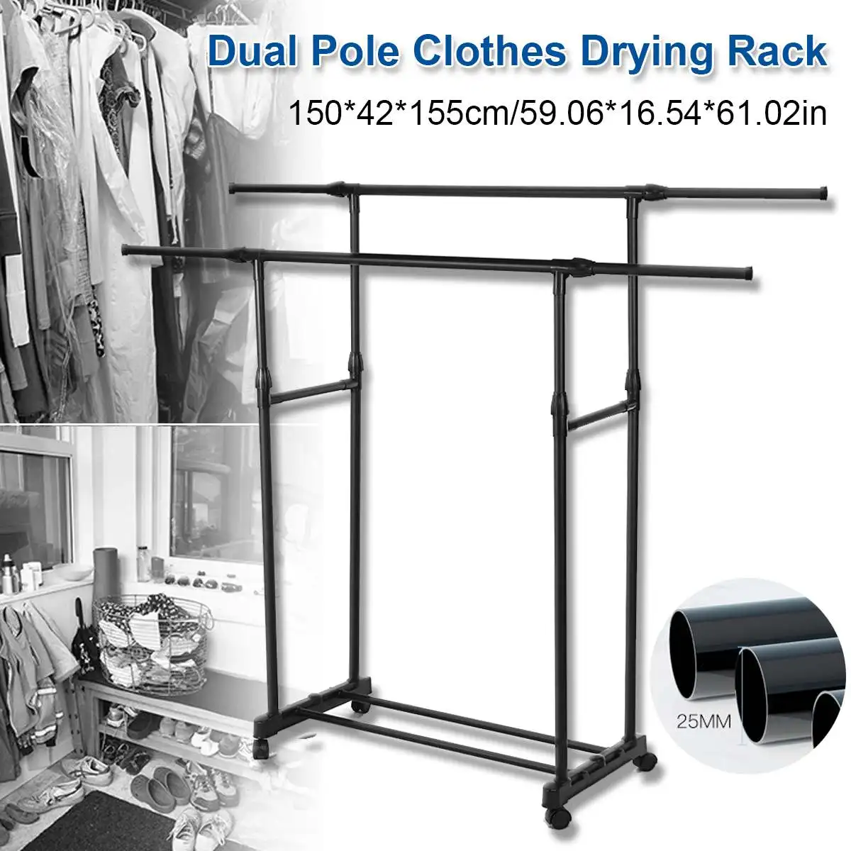 Bedroom Coat Rack Removable Clothes Hanger Floor Stand Coat Rack with Wheels Black Hanging Clothes Storage Rack Shelf