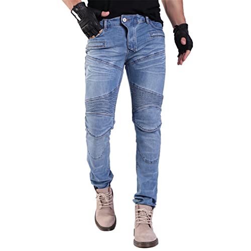 BEDSETS Pantaloni protettivi da moto Pantaloni da moto, per uomo, Jeans in denim per motociclismo,Foderati in Kevlar Protettivi Approvati CE con armatura e 4 ginocc (Blu,XL)