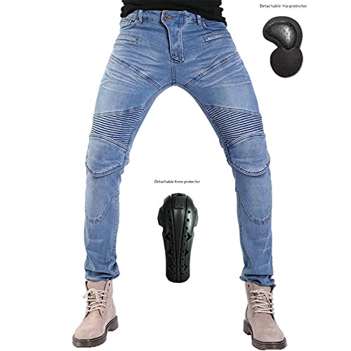 BEDSETS Uomo Moto Biker Jeans Pantaloni da Moto Impermeabili Rinforzato Protezione Jeans in denim per motociclismo con armatura e 4 ginocchiere (Blu,XL)