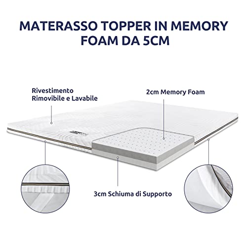 Bedstory Topper Matrimoniale in Memory Foam Correttore,160x190, Altezza 5cm, Coprimaterasso con rivestimento rimovibile e lavabile