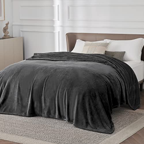 Bedsure - Coperta in pile di flanella, super morbida e calda, tinta unita, per letto o divano, Microfibra, Carbone, 220 x 240cm