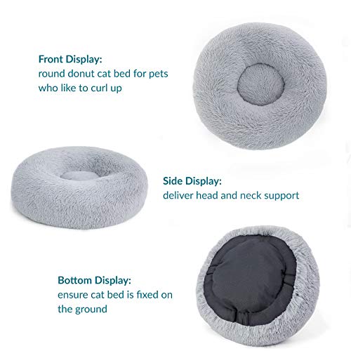 Bedsure Cuccia Gatto Morbida 60x60cm - Cuccia Pelosa per Cani Colore Grigio Chiaro, Cuscino Gatto Antistresss con Peluche Lavabile, Lettino Calmante per Gatti
