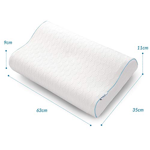 Bedsure Cuscino in Memory Foam con Schiuma a Memoria idrofilo Cuscino da Letto - Cuscino cervicale ergonomico per Il Dolore al Collo- Cuscino con Federe in bambù Fibra Bianco 63x35x11/9 CM