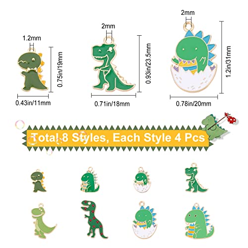 Quantità e colore: 32 ciondoli smaltati a forma di dinosauro in 8 stili, ogni stile è di 4 pezzi, colore verde naturale soddisfa le tue esigenze fai da te.
