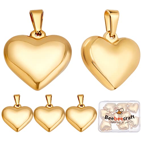 Beebeecraft 1 Scatola 10 Pezzi Ciondoli A Cuore in Acciaio Inossidabile Ciondoli A Cuore 3D Dorati per La Festa della Mamma Regali di San Valentino Collana Bracciale Making Finding