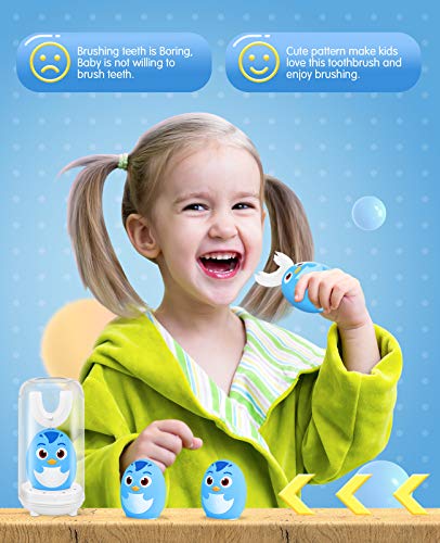 Beedove Spazzolino Bambini, Spazzola Forma U Testina e Boccola Setole Morbide in Silicone, 3 Modalità, Timer per Pulizia Automatica dei Denti, Ricaricabile con Funzione di Memoria(Blu)