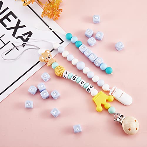 BEEFLYING 20 Pezzi Perline in Silicone con Lettere cubiche Blu Perline alfabetiche a Dadi Quadrati da 12 mm Perline distanziatrici iniziali a Foro Largo per Gioielli Portachiavi Fare (Lettera X)