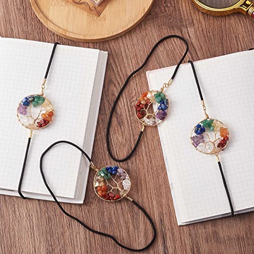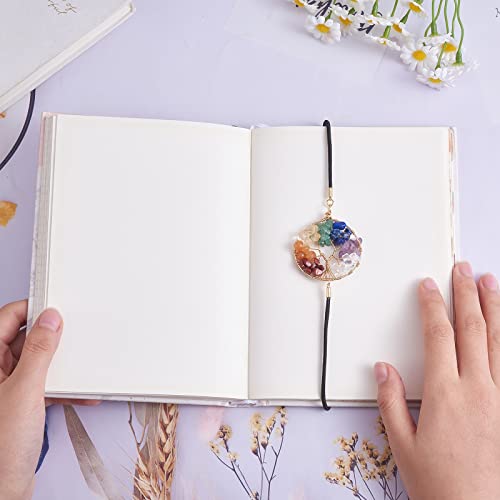 BEEFLYING 4 pezzi Segnalibri in pietra elastica Segnalibro in perline con pietra preziosa dell'Albero della Vita Segnalibri tondi piatti in corda elastica vintage per Studente Insegnante Laurea Regalo