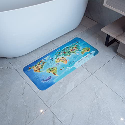 BEEHOMEE Tappetini da bagno per vasca da bagno - grande cartone animato antiscivolo tappetino da doccia antiscivolo per pavimenti 89 x 40 cm, lavabili in lavatrice XL dimensioni (mappa)
