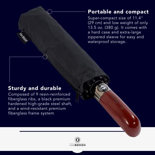 Van Beeken - Ombrello tascabile - Ombrello automatico resistente alle tempeste e antivento - nero, Nero, 95 cm
