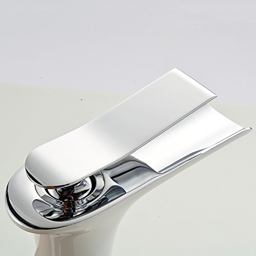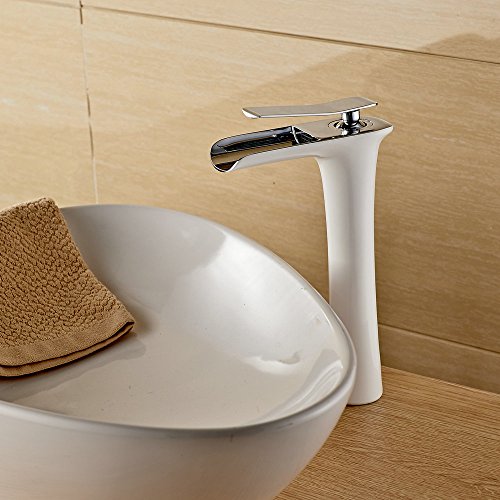 Beelee BL9009WH Monocomando per Lavabo cascata beccuccio rubinetto lavabo alto, finitura cromata lucida/Bianco Pittura