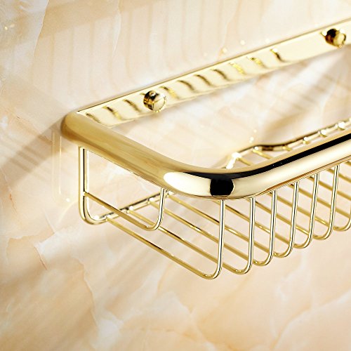 Beelee Scaffale Doccia Mensola da Bagno Cucina in Ottone Cesto Raccoglitore di cosmetico,30 x 13.5 x 8cm