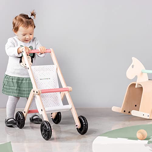 Beeloom - Girello in legno BUBBLE BUGGY, giocattolo di equilibrio, design carrozzina, girello per bambini di 1 anno, per trasportare bambole e peluche
