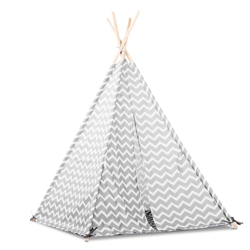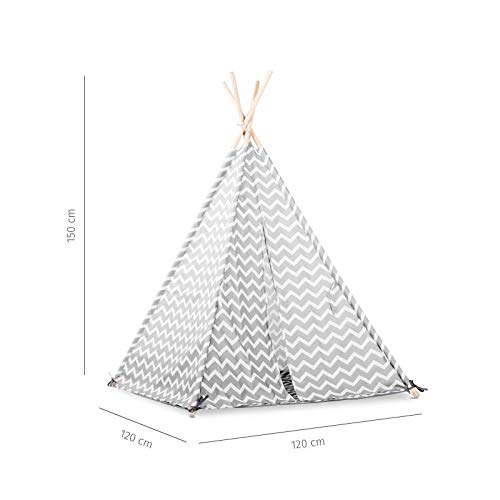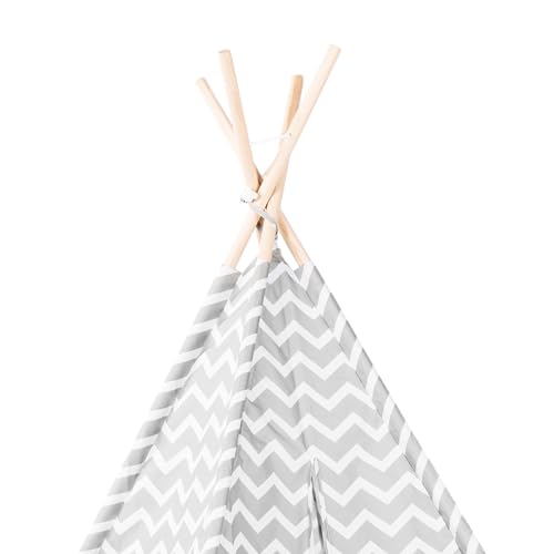 Beeloom - Tenda teepee ZIGZAG con tappeto da gioco portatile per bambini, casetta decorativa pieghevole, legno naturale, tessuto poliestere, set da esterno grigio