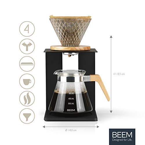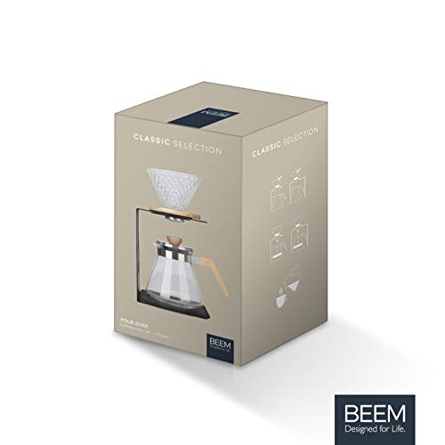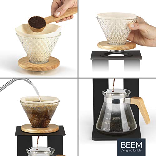 Beem Pour Over - Set di 4 tazze con filtro a mano in vetro effetto diamante, capacità 2, 0,5 l, con coperchio, struttura di alta qualità, base in silicone